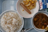 麦ご飯 牛乳 海部っ子カレー フランクフルト 大根サラダ