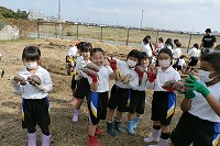みんなで集めたイモは山分けです。先生にじゃんけんで勝った子から好きなイモを一つずつ取っていきます。2周りくらい全員が大きなイモをとれました。3周り目からは小さなイモでしたが全部で5個くらいは分配されました。