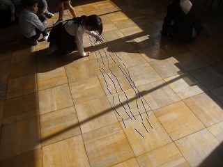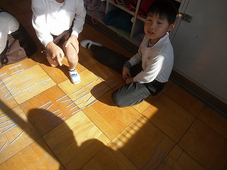 また、「いっぱいつかもう」とたくさんつかんだ時には100本以上つかんだ子がいて、数えるのが大変そうでしたが、まとまりを作ると数えやすいことを実感していました。