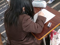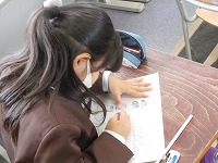 2年生が、完走大会の思い出の絵日記を書いていました。