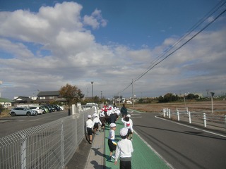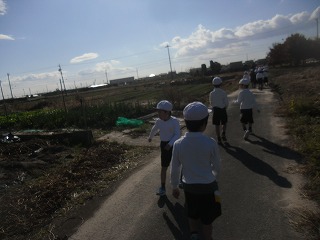 来週の完走大会に向けてt、実際に走るコースを1,2年生合同で歩いて確認しました。2年生はもちろん昨年走っていますが、うろ覚えの子もいたようですが、比較的風もなく過ごしやすい天候の中をピクニック気分で歩きました。