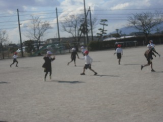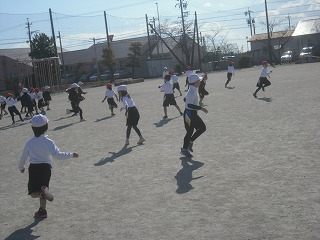 その後、残った時間で、1年生対2年生の帽子取りを行いました。さすがに2年生が強く、1年生はどんどん帽子を取られたのですが、2年生が他の1年生の帽子を取って喜んでいるときなどに、そっと後ろから帽子をとる1年生もいたりして、1年生にとっても楽しかったようです。