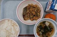 ご飯 牛乳 鯵(アジ)の梅紫蘇焼き ゴーヤーチャンプルー もずく汁 冷凍みかん