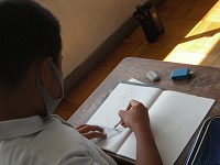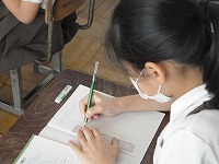 6年生が算数で図形の拡大や縮小の学習をしていました。横に拡大、縦に拡大、そして縦も横も拡大の3種類ありますがそれぞれ定規を使ってノートに作図します。