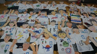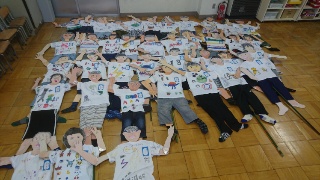 作品展の展示が終わり、片づけた4年生の、「10歳の私」が特活室に集まっていたので集合写真を撮りました。