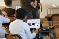 4年生が国語で慣用句について学習していました。習慣として長い間広く使われてきた、ひとまとまりの言葉・文句や言い回しのことで、その言葉通りの意味でなく全体としてある意味を表すようになった表現の事です。例えば「足が棒のようになる」といっても、本当に棒になったわけではなく、たくさん歩くなどして足が非常に疲れた様子を表しています。また、「目を皿のようにして見る」と言えば、本当に皿になったわけではなく、とても注意深く探していることを表しています。