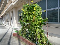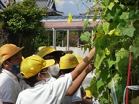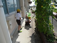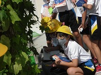 4年生が理科でヘチマの観察に出ていました。少しでも暑くなる前にと、1時間目に短時間だけの観察です。