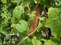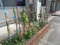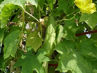 キュウリはもうほとんど枯れかけですが、ヘチマはまだ葉が生い茂っています。