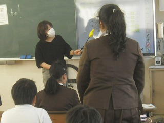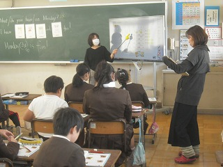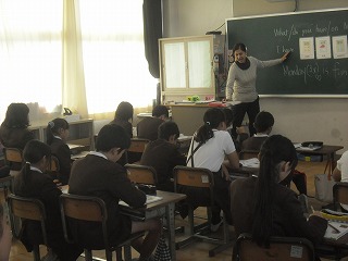 5年生が英語で、時間割の学習をしていました。教科の名前に加えて、曜日、そしてその日に何があるかという「have」という動詞を組み合わせます。
