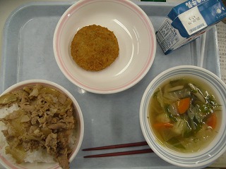 ご飯 牛乳 焼き肉丼 里芋コロッケ 鶏団子汁