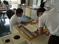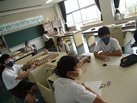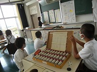 6年生が、このあたりの地域のボーリング調査の標本を見て、地層について学習していました。ありがたいことに、西川端小学校付近や佐織中学校付近などいくつかの調査標本があります。これらを比較することで、地域の地下の様子に想像をめぐらすことができます。