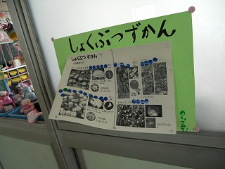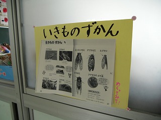1年生の教室には、いきもの図鑑やしょくぶつ図鑑のコピーが掲示してあります。子どもたちは見つけたものにシールを貼っているようです。梅雨が開けると見つけやすくなるかな?
