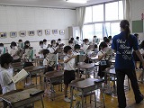 1年生が教科書をもって国語の朗読をしていました。いろいろな単語をリズムよく、元気に読んでいました。