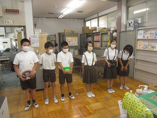 今週火曜日から、児童会が緑の羽根の募金を集めていました。コロナ対策で、朝礼などの集会ができないので、放送で全校に環境緑化のための募金を呼び掛けたのです。今日の朝は職員室の先生たちから募金をしていました。