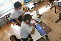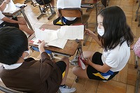 4年生は国語で「ごんぎつね」を学習しています。場面ごとに、兵十や「ごん」の行動、気持ちを、文章や言葉から読み取り想像します。同じ場面でも、人によってとらえ方が違うのが難しいところで面白いところでもあります。
