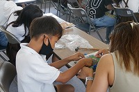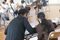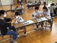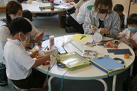 少しでも三密を避けるために、参観とふれあい制作を3学年ずつ分け、体育館と図書室・多目的室の広い部屋をふれあい制作で使用しました。
