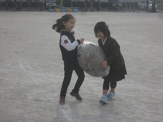 現在、外掃除(1年、2年)の子は落ち葉拾いをしています。10分程度の掃除ですが、燃えるゴミ用の大きな袋一つ分くらい集まります。終わった後に運ぶのも一苦労です。