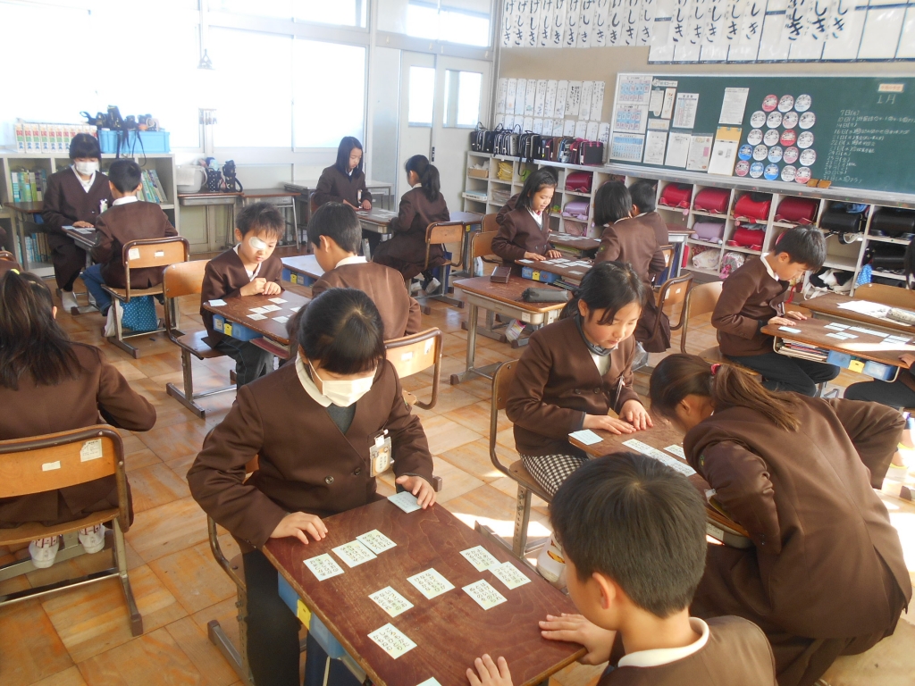また、21日の全校集会で行われる百人一首集会に向けて、練習をしました。
