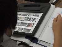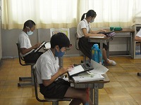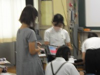 6年生が理科で月の様子を学習していました。表面の拡大写真を、みんなタブレットを使って探し、観察していました。
