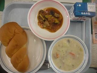 愛知のツイストロールパン 牛乳 ラタトゥイユ クリームスープ