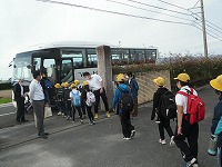 いつもより少し早い時間ですが、5年生は全員集合し、バスに乗って野外活動に出発しました。