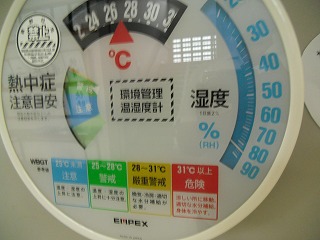 この写真は、昨日の下校時の写真で、湿度が85%を示しています。目盛りは90%までしかついていませんが、日中には90%を超えるどころか、針が見えなくなるくらいになっていました。