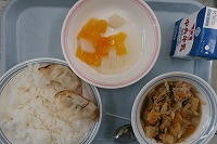 21日の給食は、蒲郡みかんのゼリーを使って「みかんのビタミンゼリー」を作ります。みかんにはビタミンCが豊富に含まれています。ビタミンCには免疫力を高めたり、肌の健康を守ったり、鉄やカルシウムの吸収を高めたりするなど体によい働きがたくさんあります。ですが、汗や尿と一緒に体外に流れ出たり、ストレスを感じると消耗してしまったりするので、積極的に摂らないと不足してしまいます。ビタミンCは、野菜や果物に豊富に含まれていますので、毎日意識して摂るようにしましょう。