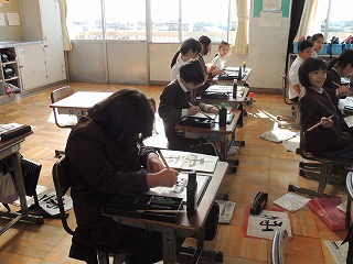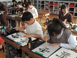 4年生は書写で「雲」を書きました。書く時の姿勢や筆の使い方を意識して、集中して書きました。