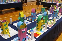 今週、各学年が少しずつ作業していた作品展示が進み、いよいよ作品展の開催です。今日は、朝から学年ごとに分かれて作品を鑑賞しています。