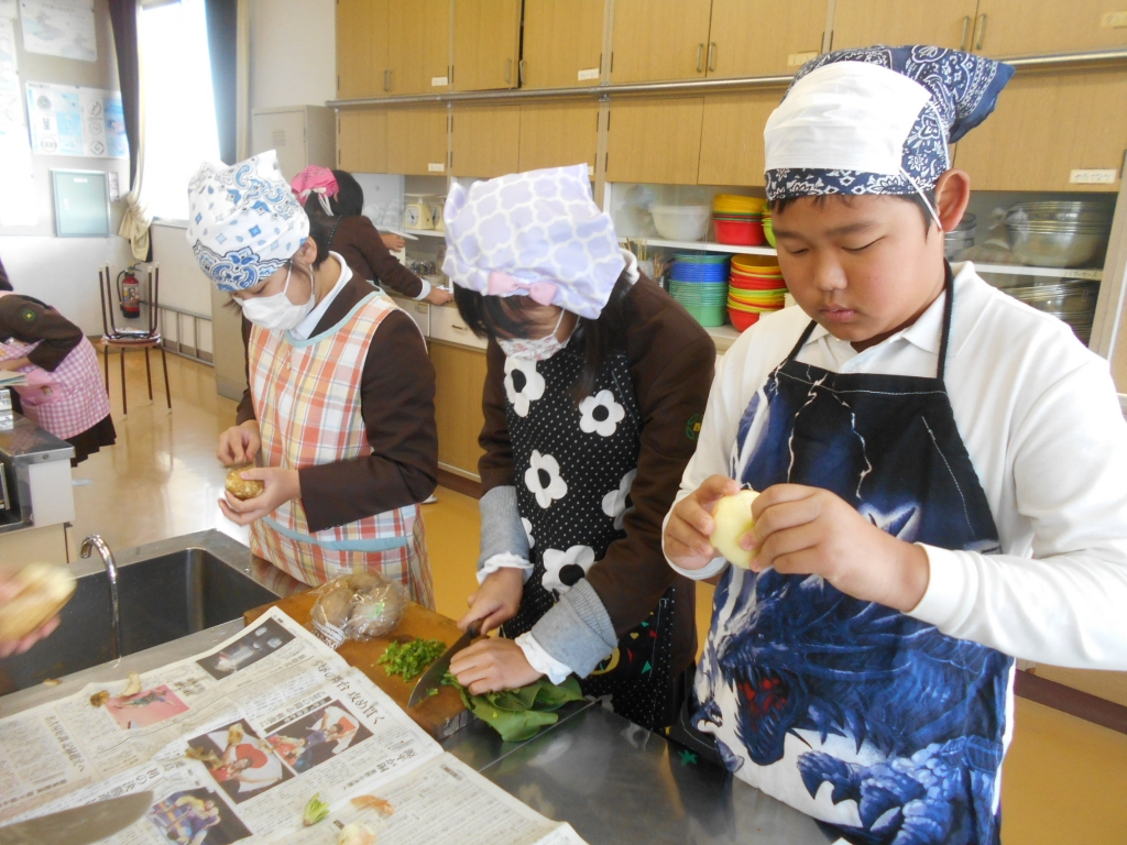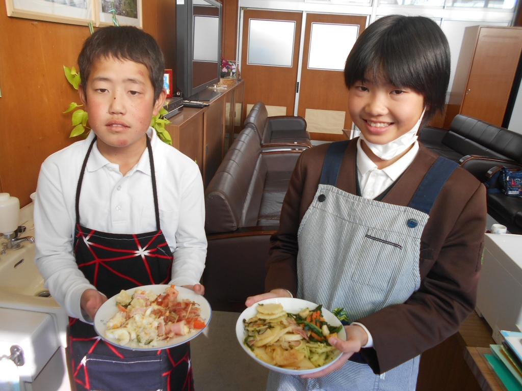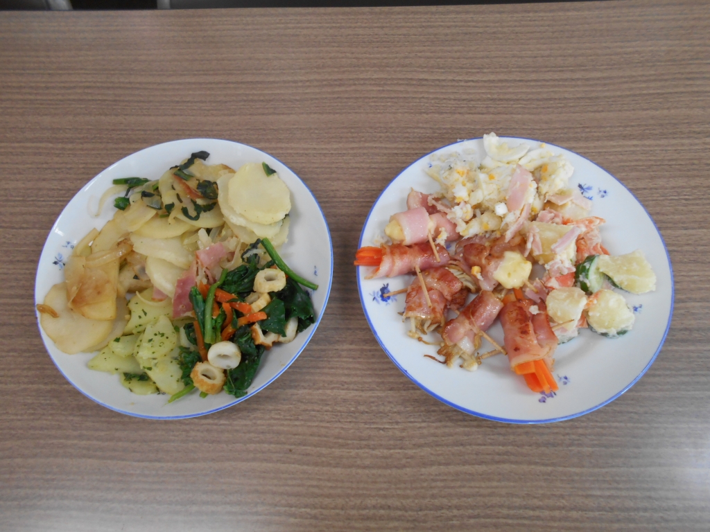 6年生は、調理実習をしました。ジャーマンポテトやベーコン巻きなどを作りました。