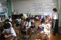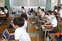3年生が、タブレットを使って、SNSなどで起きる様々な問題について学習していました。愛西市から派遣されているICTの支援員の先生に教えていただきました。