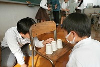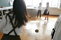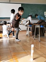 2年生が生活科で1年生と遊ぶための、手作りおもちゃを作っていました。本当に1年生に紹介する前に、まずは自分でやってみて確かめます。