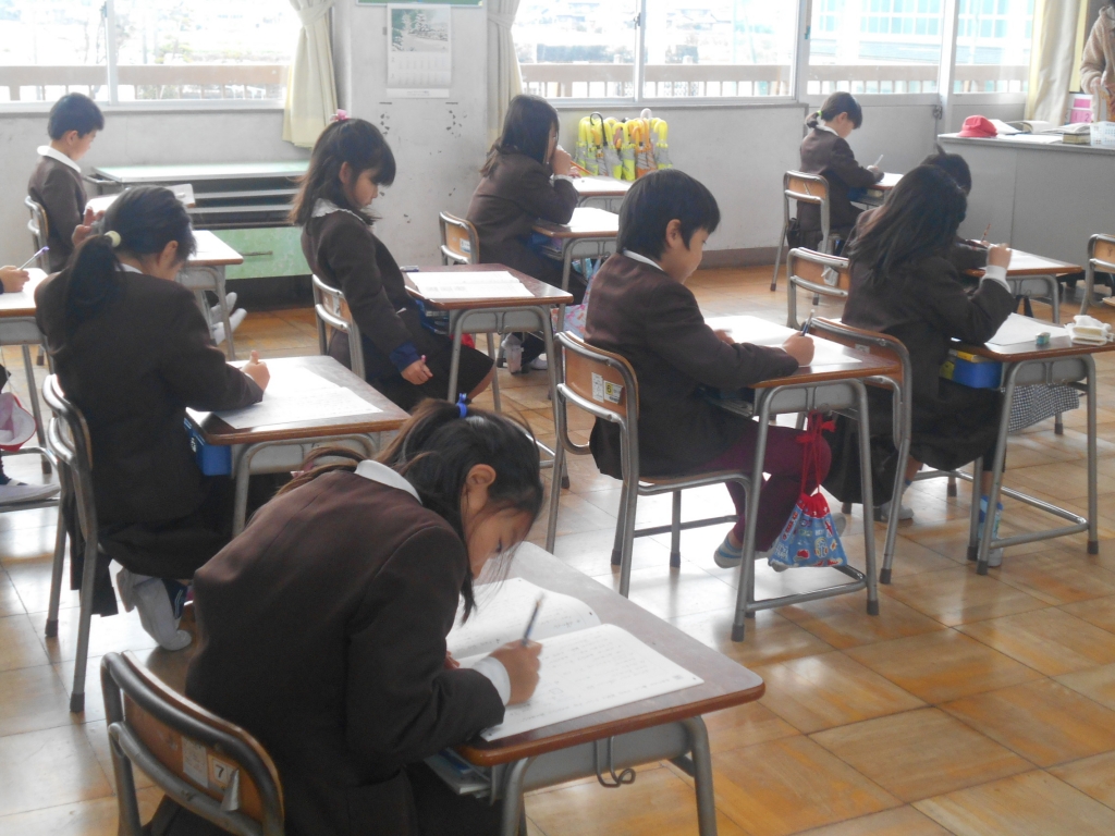 今日は、学力テストを行いました。今の学年の力がどれだけついているか確かめ、まとめに生かします。