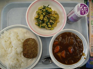 ご飯 発酵乳 ハンバーグ ハヤシライス 元気サラダ