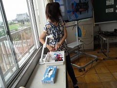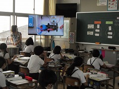 理科の授業は、まだ理科室で向かい合わせになって実験や観察をすることができません。そのため、NHK for School の動画などを見て学習することが多いのですが、ちょうどよいものがないときは、先生が実演します。みんなに見やすいように、教材提示装置を使って大きな画面に拡大して見せていました。
