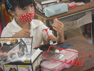 4年生が、先日紹介した電気の実験キットを早速組み立てていました。