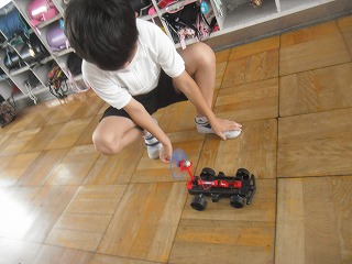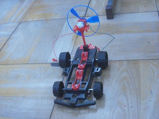 実験にはいろいろな段階があり、形も変わるのですが、今日はプロペラを回して走るように作っています。