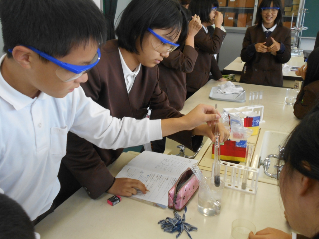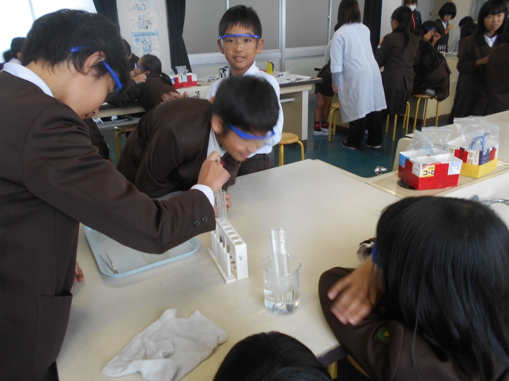 6年生は、理科で水溶液は、金属を変化させる働きがあるか調べました。