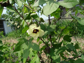 先日紹介したひまわりの隣には、綿(木綿)が植えてあります。2年前から育て始めたのですが、最初はうまく育たず