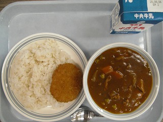 麦ごはん 牛乳 カレーライス キャベツ入りメンチカツ