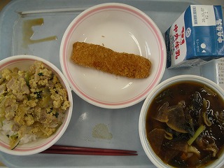 名古屋コーチン親子丼 牛乳 イカフライ アオサ汁
