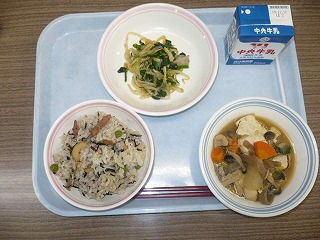 ひじきご飯 芋煮 ほうれん草のゴマ和え