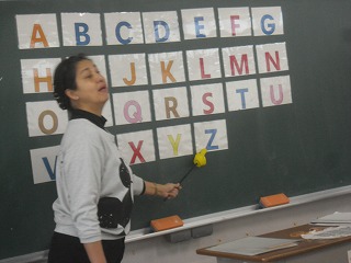 3年生が英語でアルファベットの発音を練習していました。BとVの違いやGとZの違い、Cの発音など微妙な違いを繰り返し練習していました。