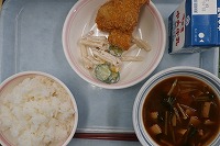 ご飯 牛乳 手作りチキンカツ マカロニサラダ 豆腐の味噌汁