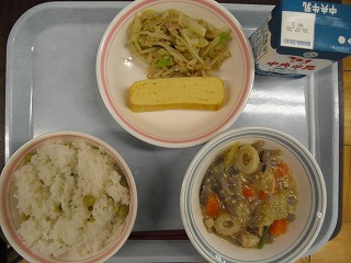 枝豆ご飯 牛乳 冬瓜の旨煮 卵焼き キャベツとツナの和え物