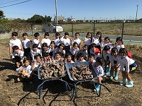 全部で一輪車二つ分のイモが取れました。 写真が小さくてわかりにくいかもしれませんが、みんなとてもうれしそうな表情をしています。