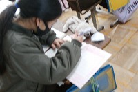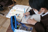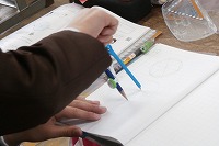 5年生が算数で正多角形の学習をしていました。正三角形や正方形(正四角形)はすでに学習していますが、正多角形とはどんなものでしょうか。まずは、基本となる正六角形をコンパスや分度器を使ってノートに作図していました。