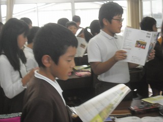 6年生は「ふるさと」を合唱していました。p(ピアノ)やmf(メゾフォルテ)、クレッシェンドやデクレッシェンドなど、楽譜に描かれた記号を読み取りながら歌いました。