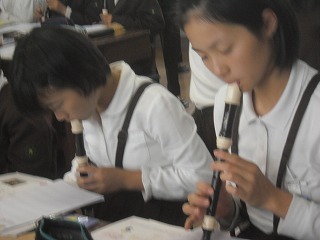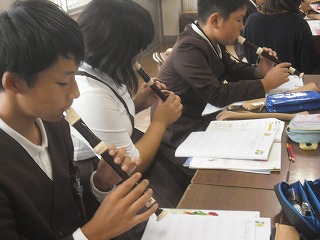 また、和音に合った音でそれぞれが作曲し、伴奏に合わせてリコーダーで演奏しました。みんな違う曲なのに、和音になっているのでとても良い響きになりました。
