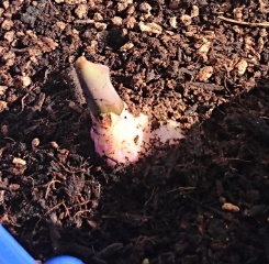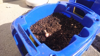 1年生が植えた植木鉢のチューリップからついに芽が出始めました。大部分はまだ気配もありませんが、2つの植木鉢だけ芽が出ています。子どもたちが登校する7日にはもっと多くの芽が出ているかもしれません。楽しみですね。